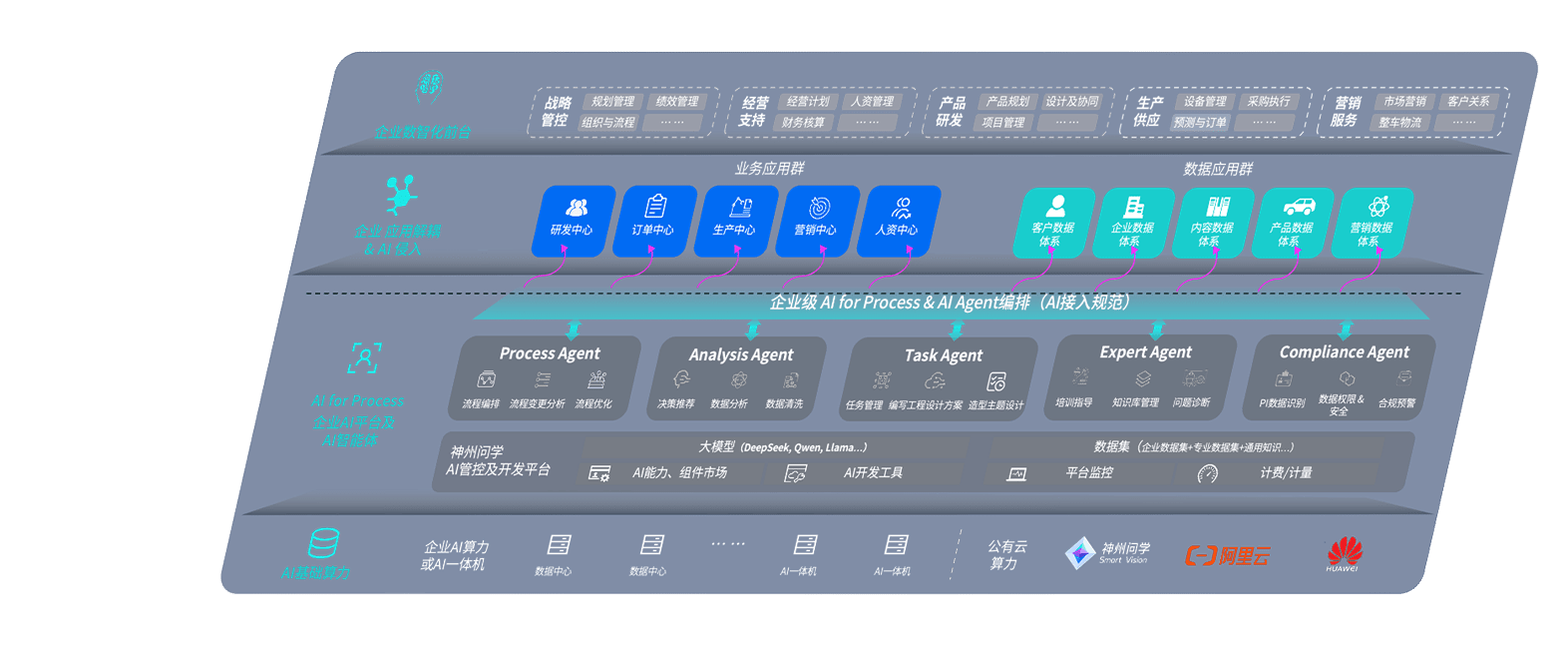 耀世娱乐问学智车解决方案是一套基于AI技术的汽车行业智能化系统,,覆盖从底层算力到顶层AI应用的全栈方案。。方案由算力层、、、模型层和应用层组成:算力层,,方案支持多种一体机配置,,具备云端灵活部署、、、、多云适配以及动态优化计算资源的能力;模型层,,,,耀世娱乐问学平台版提供了企业级AI应用一站式构建与管理平台,,,,支持基于后训练强化技术的汽车企业专属模型的训练、、评测和运营;应用层,,,,耀世娱乐问学DeepSeek版提供包括超级员工、、智能招采、、、、智能营销、、智能客服、、、AI for BI等一系列解决方案,,可助力汽车行业实现数字化转型,,,,让管理更智能、、、响应更敏捷。。。。